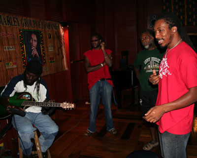 The band came together for an early morning meeting. They provided backing for all of the artists.