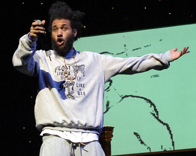 "You're Not Original!" shouts Purple as he performs his second track of the night.