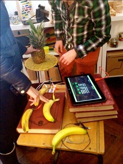 We saw for ourselves an example of the 'fruits' of collaboration between art and technology: on the day that we were there a local artist, Dustin O'Hara, had created a game controller that enabled you to play Space Invaders using a pineapple, some bananas and a MaKey MaKey printed circuit board - certainly a different slant on the term 'natural' user interface!