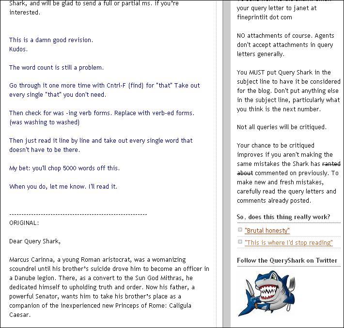 You probably wouldn't go to a Noo Yawk literary agent for sensitivity training . . . Janet Reid's Query Shark blog is compulsive reading as she picks apart prospective writers' pitches. If you're one of those people who feel everybody has a novel inside them then it's essential reading. Conversely, if you feel everybody has a novel inside them and that it should stay there . . . then read on too.