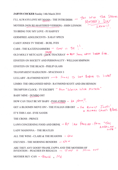 The Sunday Service 'Set list' I managed to steal off Jarvis before he left the studio this week...enjoy!