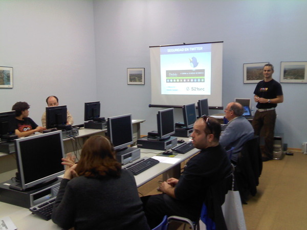 The presentation topic was: "Social networks and Security", specifically with Twitter. The week prior to the presentation I felt very nervous. I did several tests before the presentation day, it was a bit technical because it was supposed the people who will attend it would have knowledge and experience with the topic.