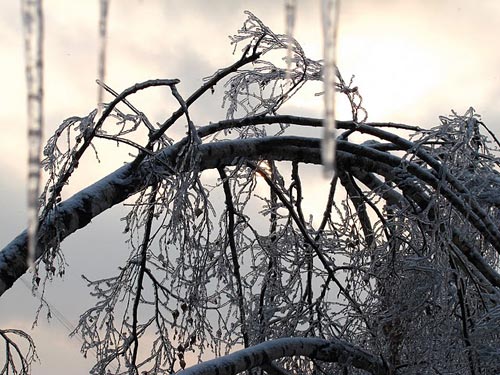 I also want to say that the weather before the New Year's Eve was unusual and was freezing rain. As a result we've got the crystal trees everywhere, which you can see in the photographs taken by my friend Oksana.