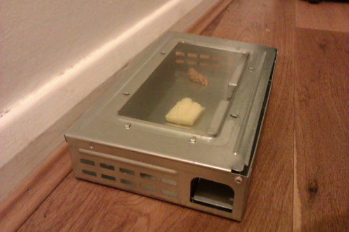 Please enter and make yourself at home. Feel free to have some of the peanut butter and cheese we have left for you. We promise that if you enter we won't hurt you. We will release you in a beautiful park - it has a nice café where I'm sure you'll find lots of food scraps.