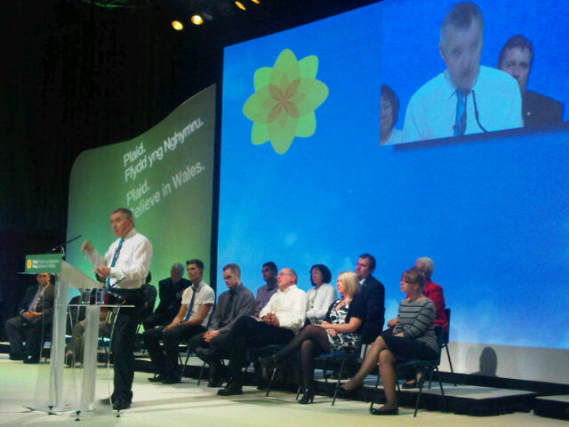 And the best seat in the house? No, not mine, but former Secretary of State Ron Davies's in the middle of the stage for the Plaid leader's speech. Did he need to get there early to bag a place? I doubt it.