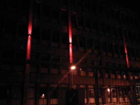 And what touches! A series of large, flashing red lights up the side of the building have been installed, described by one passer-by as giving the place the look of an Eastern Bloc nightclub. I'll take his word for it.
