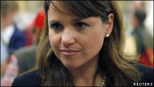 But if the crowd were disappointed at the no-show, they certainly didn't show it, gathering in front of the bus and whooping "Freedom" before settling down to listen to speakers, including Diana Nagy, a Christian country singer in high-heeled boots who out-Palined Palin with a swooping, giggling delivery of political punchlines. Unlike Sarah Palin she also gave a solo performance of the national anthem, with heavy emphasis on the line "one nation under God" and less politically explicable weight on the word "stars".