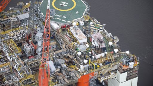 An offshore oil rig from above.