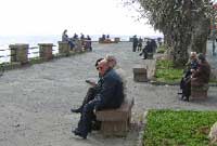 Pan fo'r haul yn machlud yn y gorllewin y mae'r dref yn deffro ac ar ôl dod o hyd i'ch ffordd drwy'r strydoedd culion fe ddowch at y prif bromenâd braf ger y morglawdd lle mae hen ddynion yn eistedd ar feinciau yn rhoi'r byd yn ei le dan y lampau stryd Fictorianaidd ac yng nghysgod y palmwydd.