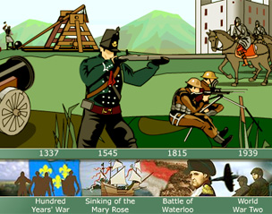 To test your military knowledge, survey the battlefield shown in the game, then see if you can work out which weapon played a part in which conflict.