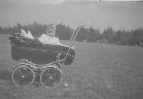 Lesley Ann Perry in her Pram in spring 1945