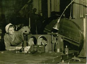 This picture was taken of my Great Aunt in an ammunitions factory during the Second World War. At this time, her husband, my Great Uncle Ambrose was in active service in the Middle East as a Lorry Driver for the Royal Engineers. Ethel kept a small scrapbook during the war from which this picture was taken.