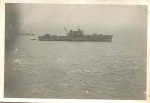In January 1944, the Bruiser and other ships in the assault convoy took part in the Anzio operation. This operation is well known to the Americans as well as the British. We were landing south of Rome to help the Army out really, and we didn't spend too long at Anzio because we got hit and damaged, and had to return to Malta, but on D-Day at Anzio we had a number of ships put out of action through heavy mining.