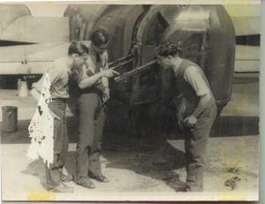 In an old family photo album I have found two pictures of a group of airmen with a Wellington Bomber during an obvious lighter moment.