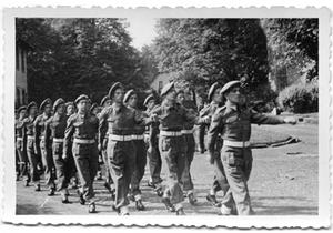 At the end of the war in Germany there was thanksgiving and the company started to practice for marching to the Thanksgiving service on conclusion of The Campaign in North West Europe