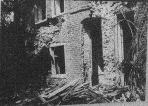 The exterior of the Common Room the morning after the bomb that devastated the building at Swanley Horticultural College. It was too badly damaged to repair and was later demolished.