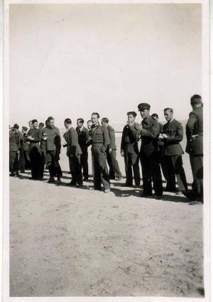 Officers and Sergeants ‘Parade’ coming up to our mess to serve our Christmas dinner 1942