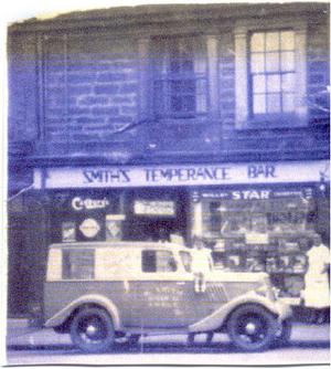 My mum owned several shops just before the war which she sold for the sake of her health before moving to Ripley in 1939. One of the shops is in the picture below and shows my youngest sister Elle sitting on the van with my Mum, Myra Smith.In the shop there were cubicles where you could sit to eat ice creams fruit ,sweets, cigarettes and upstairs was a place you could eat peas and pies and sandwiches. The shop was open both day and evening and people came rather like they would to a bar today.