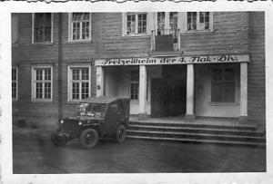 As one leaves Hilden, on a steadily rising road which goes to Barmen- Elberfelt, a tramway runs at the side of the road, in no way interfering with road traffic. On the right is the entrance to the barracks, modern and well designed. As you enter, on the right was a special building divided into small rooms, used by the German soldiers to entertain wives. We used it as officer accommodation. The building was made of straw blocks, lightly bonded with cement. The blocks provided good insulation. Some bright spark got the Provost department to paint a large sign proudly displayed on the front, bearing the tasteful legend, “Fircombe Hall”. When Monty was due to give out medals, the general told us to remove it although it was restored to its place afterwards.