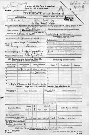 Certificate of Service of John Darlington Bruce with the all important top right-hand corner still attached, signifying his good conduct and honourable discharge.