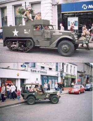 US Army re-enactors in vehicles identical to those Oliver Gibson played on as a child.