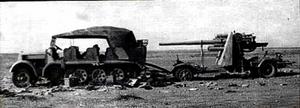 Although there was a big packing-case in the covered back of the truck, there was plenty of room there for our prisoner, as well as for the novel German Army 20-litre water-can. Keeping about 20 miles South of Mekilih, we then drove generally Eastward, taking the best of the "going" as far as we could judge. After a couple of hours or so, taking our hourly turns at the steering-wheel, the pangs of hunger proved powerful so, when we changed over at 1600, we looked for sustenance in the truck and found a tin of Pineapple Chunks. Sitting down on the ground with our prisoner, we each dipped our fingers into the can to grab the pieces, in order to assuage both hunger and thirst. My ability with the German language was fairly fluent, so I did my best to quiz the man, who gave his name as "Schulz", of Three Company, First Brandenburg Regiment; he tried to be careful with his statements, but admitted that he had not enjoyed his 6 weeks in Libya. While we sat there, we saw a Fieseler Storch light aircraft flying Eastwards about 10 miles North of us, so we judged there must, therefore, be more enemy troops ahead; we also wondered whether it was carrying their Commander, whom we later heard was called Rommel. About 2 hours later, when dusk had fallen, we crossed a series of tank-tracks; we recognized these to be from the Mk 2 and Mk 3 Germans, moving in a North-Easterly direction, and up to a hundred in number, accompanied by a similar number of heavy lorries. We concluded that they must be concentrating in a position to cut the road between Gazalah and Tobrouk.