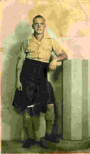 David Mathews joined the 51st Gordon Highlanders when he was 18 years of age. Only a short time later his Regiment was taken prisoner of ware by the Germans. They were being marched through the woods in France and stopped to go to the toilet. David and his friend, Andrew lagged behind the rest of their regiment and managed to escape. They took refuge in a small village from the 11th November until February, 1941, spending time with various families, protected by the French resistance.