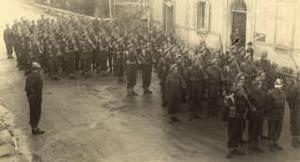 The day had come to return, all were formed up to be given a farewell by the London Scottish CO.
