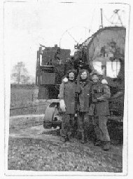 Three of the girls in front of one of the searchlights at Luton