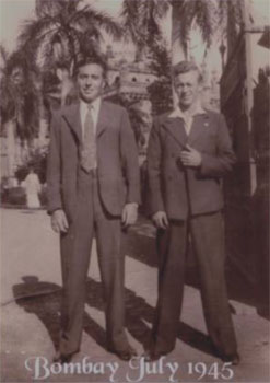 Ray (just married) with Peter Williams (from Easton, Bristol) in Bombay 1945.