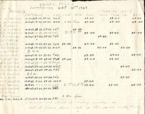 This image is of a document found inside an old book whilst clearing out a house. The history of it is somewhat of a mystery but it appears to be some kind of duty log from World War Two. Does anyone know more or recognise any of the soldier’s names?