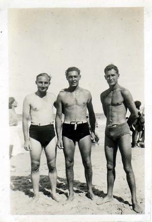 George, Les and Jack Burgin on the beach at Tel Aviv. On leave in Palestine September 1943