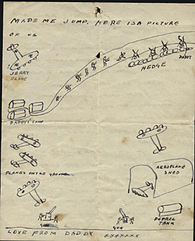 A diagram on the back page of a letter from Ann's father when he was at RAF Huntingdon.