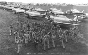 New recruits at Clewiston Airfield, Florida, USA. 1942. Mr. Harry Leeks is second row, 3rd from the left (centre).