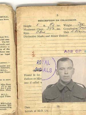 Stanley Lakin from his 'soldiers service and Pay book'
