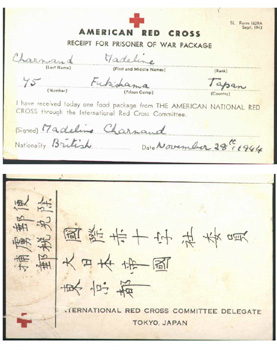At the beginning of July we would watch the constant flights of carrier planes overhead from the fleet offshore. They were mostly Grumman Avenger bombers with their Hellcat escorts, flying in formation overhead to attack some distant target. One morning in mid July a guard came up to Mother in her room and ordered her with a firm summons to go down immediately to the Guards Common room. At first she thought that she had done something very wrong and was very apprehensive at the order, but when she entered the guards took little notice of her and were just casually lying around chatting . She was puzzled at first but then one rose and produced a registered parcel and a form for which she was told to sign for, after which she returned to her room puzzled, and proceeded to open it. Lo and behold the package was from the Naval Attache at the German Embassy, and there before her eyes was all the jewellery that she had entrusted to him for safe keeping in 1942. She put it away safely, and it all survived the war, the bombings, shellings etc. and I am glad to say that the whole lot, with its extraordinary story, is now safely in the hands of my daughter Janet!