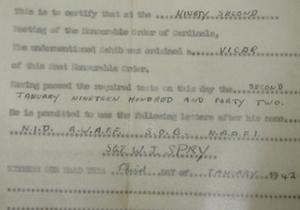 If he did this successfully he would say “I drink to the health of Cardinal Puff for the second time”. He would then perform the same sequence but each movement done twice. This procedure was watched very closely by the other members of the mess. The slightest mistake was greeted with howls of derision. The applicant had to quickly drink the rest of his beer and start again with a fresh pint.