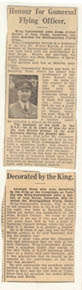 News paper cutting from local Yorkshire paper (poss. Spen Guardian) detailing bravery and achievements of Wing Commander Sutton.