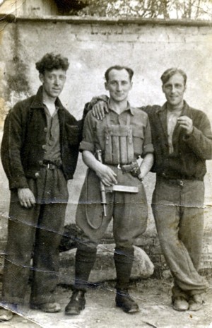 This picture was taken in Italy probably in 1944. My father, Jack Richardson is on the right.On the left is a fellow escapee, I believe his name was Martin. With a partisan.
