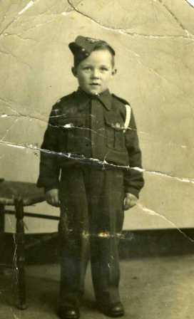 When I was about four or five years of age, someone made me an exact replica of an army uniform with side cap [see photo] and I also wore army type boots into the bargain. The badge and insignia was that of the RA [Royal Artillery] and whenever my parents took me out in my uniform, which I was extremely proud of, I never failed to be given some money and would always go home with a pocket full of pennies. My favourite places to be taken were the “Airman’s Rest” and the “Red Cow” two public houses near to Braunstone, which still sold beer at that time and from where I would go home with TWO pockets full of copper coins. You could say that wearing my uniform was my ‘richest memory’