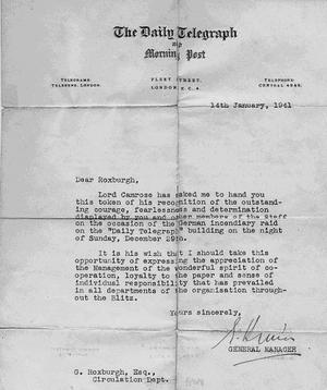 His courage, however, was acknowledged by the above letter from the General Manager of The Daily Telegraph.