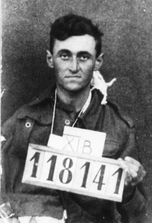 A few days after arrival we were quickly shipped on by rail in a cattle truck to Stallag 11b in Folenbostal. Food was scarce in the camp and it was every man for himself, as we scavenged everywhere we could to find anything we could. The hunger was terrible as it was constant and for weeks on end. It became an obsession to find food anywhere you could. It was on one of these self made missions that I passed the office glancing in and noticed no one around. I saw my chance to look around and took it quickly. I looked through drawers and drawers but all I could find were hundreds of photographs, which the Germans took of us when we arrived at the camp. I quickly found mine and shoved it into my pocket. I have only seen a few similar pictures to mine from other soldiers and I am unsure what happened to the rest. I stayed in Stallag 11b until the end of the war.