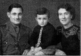 Tim Wallis aged about 3 or 4 years old, flanked each side by his mother and father, taken during 1943.