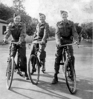 Bike rides in Ismalia, December '42 (from left, Colin MacArthur, Douglas Baker and Richard Platt