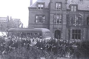 Girls of the Red House (Bridlington Girls' High School)setting off for a picnic to celebrate V.E. Day.