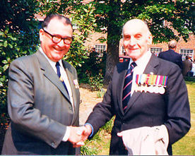 One of the three: nearly 50 years after the events described here I met Ted Briggs. Here we are at Portsmouth on 24 May 1987. Ted is on the left and I am on the right.