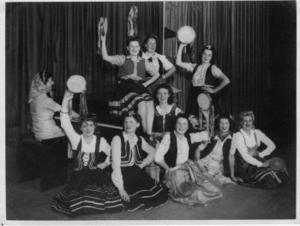 Place entertaining the troops. The photograph is of the group in their costumes performing Brahms Hungarian Dance No5.