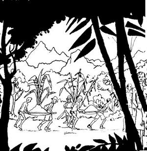 Walking down the center aisle of our hut, I had difficulty in not breaking into a run, as I felt thousands of imaginary eyes boring into my back. Hurrying over to the latrine while trying not to spill my salt and water, my legs began to feel wobbly, and by the time I reached my destination I had to lean on a post as I stirred my potion and then tried to swallow it.
