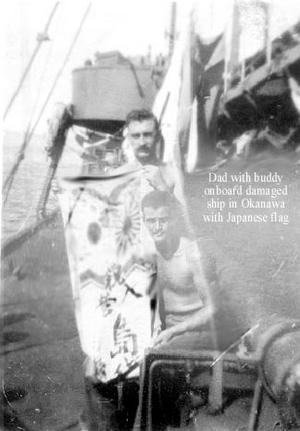 This is an excerpt from a letter that was written by my dad, Charles Hladky, to his sister from Okinawa, telling her of the day they were told the war was over. The letter is dated September, 10, 1945. He had been there with the Coast Guard when the end of the war was announced.