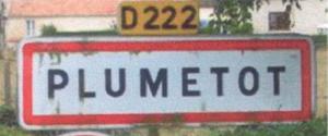 The entrance sign to Plumetot, Calvados, Normandy. This village was at the heart of the Allied aerodrome B10 during the Battle of Normandy in 1944